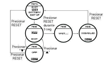 ABS deshabilitado mediante la función “DISAB ABS” del menú