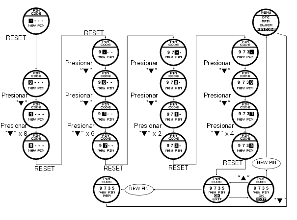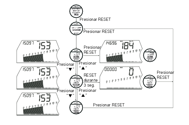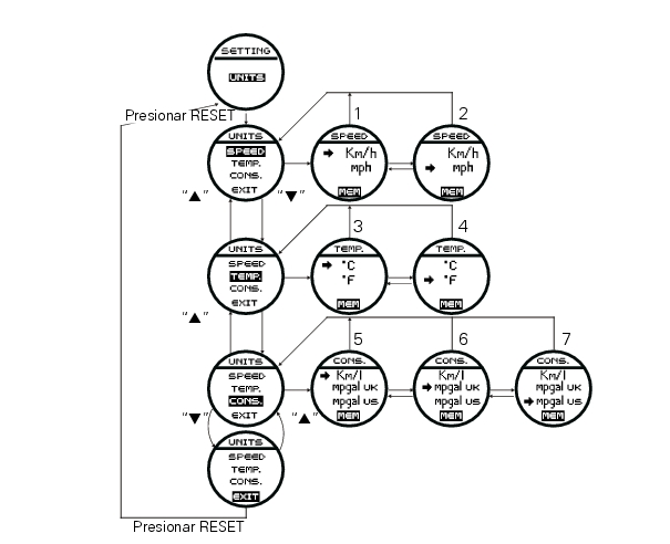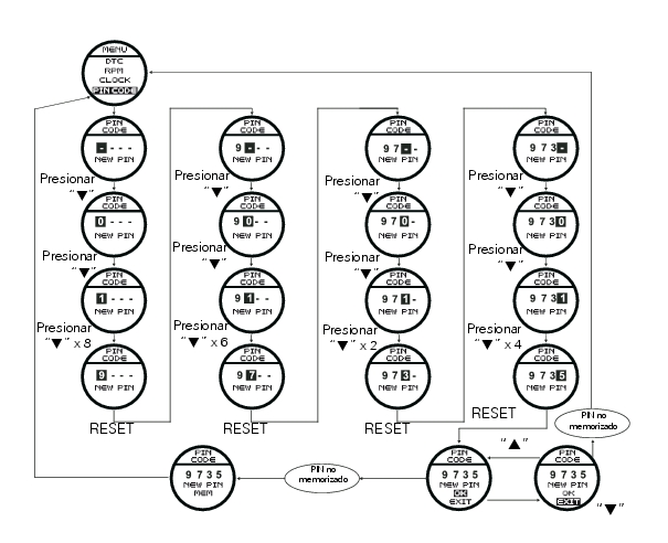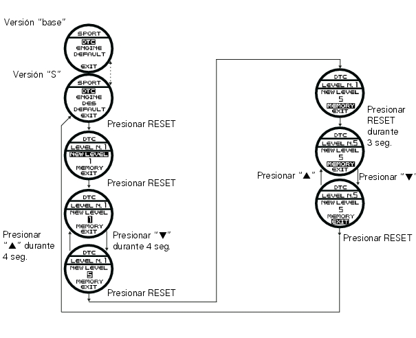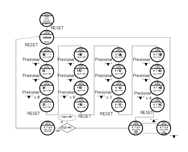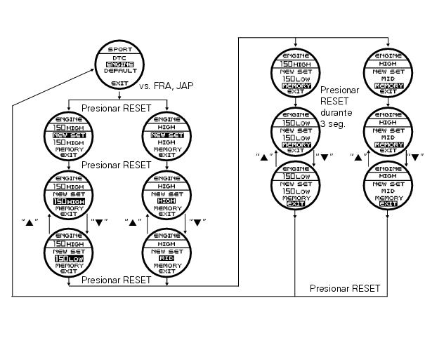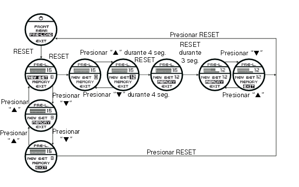 con los pulsadores (1) “s” y (2) “t” seleccionar la indicación “NEW SET“ y presionar el pulsador de reset (3);