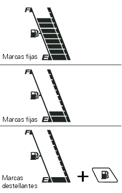 Se enciende cuando el depósito está en reserva; quedan aproximadamente 4 litros de combustible. |