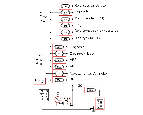 La integridad del circuito eléctrico que conecta el alternador al regulador y el regulador a la baterìa (para efectuar estas pruebas, desconectar los cables de la baterìa, controlar la integridad de las conexiones eléctricas, de los cables y eventuales cortocircuitos). Controlar también la conexión de masa del circuito eléctrico en el motor