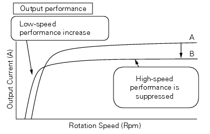 A altas revoluciones, obtener una corriente con intensidad más contenida. Por lo tanto, no se fuerza el regulador de tensión, que debe disipar la energìa no absorbida por los empalmes