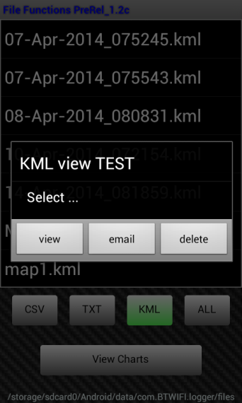 GPS positioning data is recorded as a KML file which can be uploaded to Google Maps.
